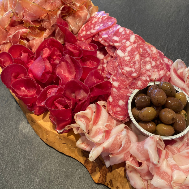 Tray of typical Sardinian cold cuts with peppered prosciutto, hog jawl, coppa, mature sausage seasoned with myrtle, Sardinian mustela, sheep prosciutto, testa in cassetta, peppered bacon, bresaola flowers with cream cheese and pickled vegetables Tray of typical Sardinian cheeses with fresh pecorino cheese, semi-mature pecorino cheese, Sardinian mature DOP pecorino cheese in flakes, ricotta cheese and a bowl of honey Mixed tray of Sardinian cheeses and cold cuts with mature sausage, myrtle seasoned lardo, Sardinian mustela, bresaola flowers with cream cheese, bowl with dressed Sardinian olives, fresh pecorino cheese, Sardinian mature DOP pecorino cheese in flakes, a bowl of honey and pickled vegetables You may customize your tray with the products you prefer. The price will be calculated based on the weight of every single product that may vary depending on the number of people.