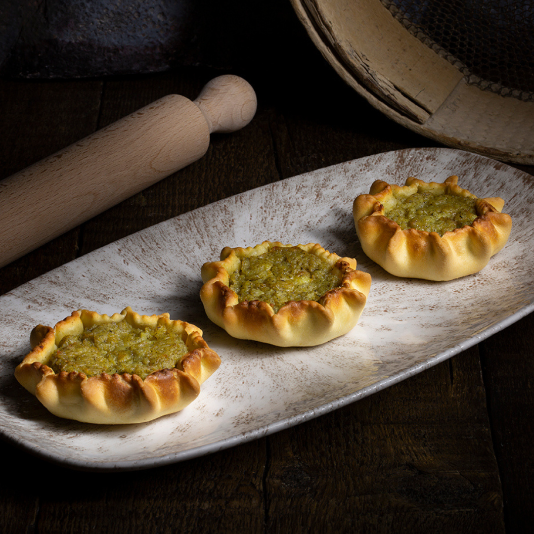 Handmade Coccoi Prena stuffed with pecorino cheese, wild mint and potatoes € 2 each