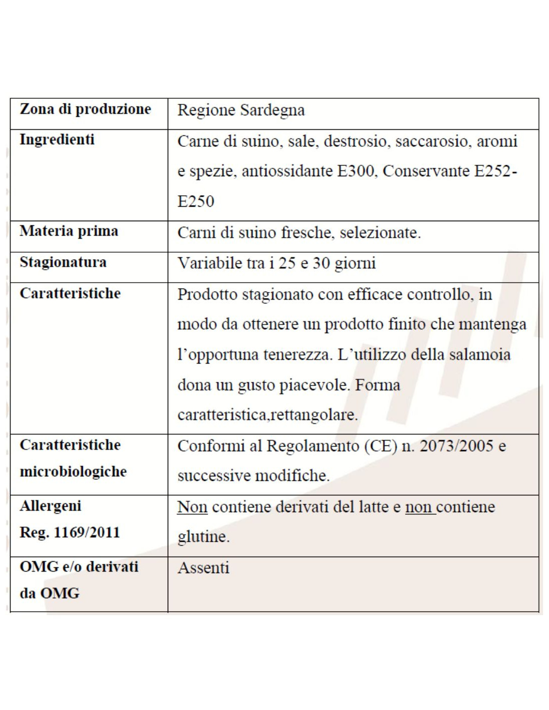 Cured pork fillet. High quality typical Sardinian product, flavored with green pepper.