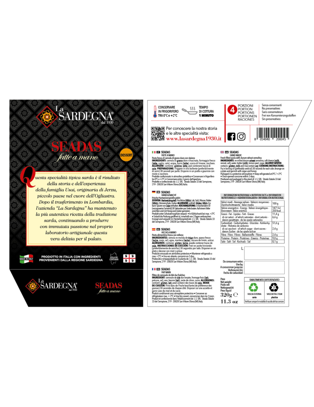 Handmade Seadas Conf. 4 pezzi 320g La Sardegna
