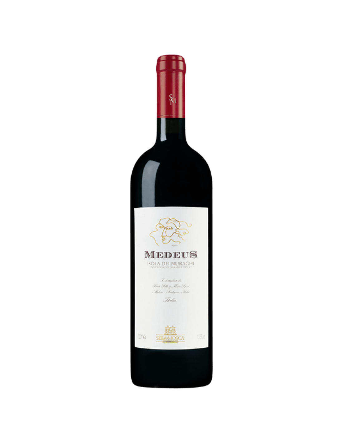 Isola dei Nuraghi IGT. In the glass it has a dark ruby red colour with purplish hues in the most marginal areas; at the nose stand out dominant fruity scents that overpower the flowery hints of violets and herbs like hay. To the palate the fruity sensation continues, accompanied by the presence of soft tannins, balanced with the freshness of an original good acid heritage, that sustain the evolution in the mouth for long. Very well concealed are the reminiscences of the passage in a fine wood slightly vanilla-scented. There is the general sensation of a solar freshness of a Mediterranean atmosphere and spices from the South. It goes perfectly well with semi-mature and mature cheeses, red roasted meats, goat meat and lamb meat.