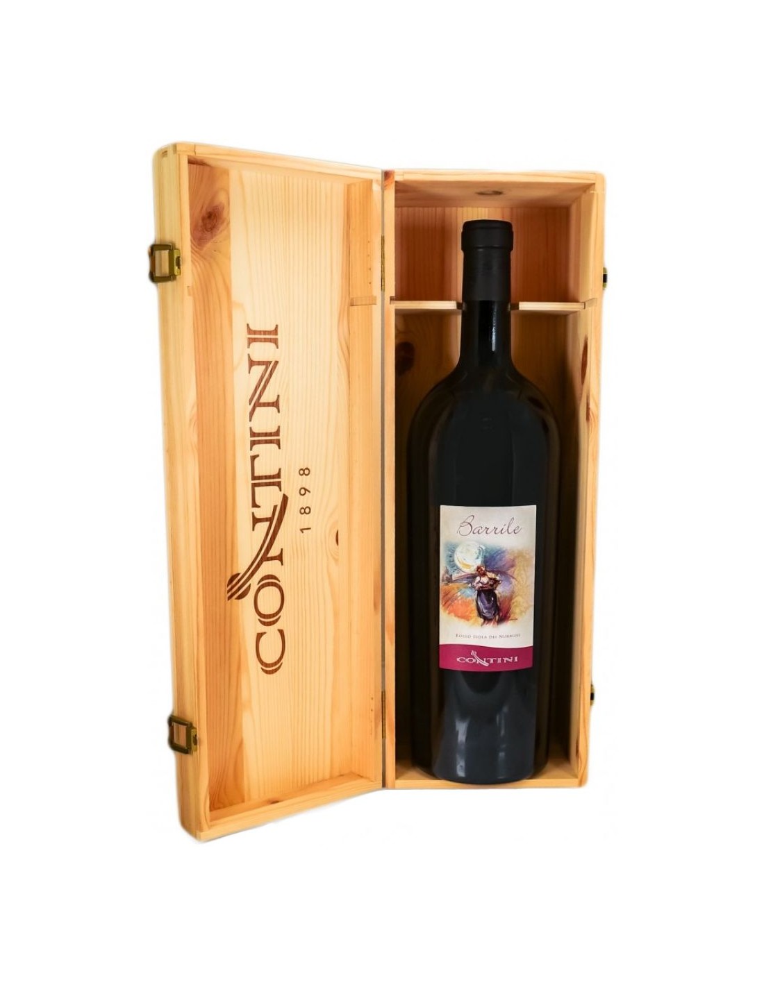 According to an ancient tradition, the “barrile” was a little barrel that contained the best wine produced by the family of the bride, and it was offered the day of the wedding. Lively red, promises maroon hues of a passionate love. Its perfume is elegant as a bride and complex as a great love. Its colour is as red as red fruits, sweetly spiced by the wood. Barrile gladly accompanies roasted meats, it loves the strong flavours of play and the full-bodied taste of spicy cheeses. It is the flagship label of the Cabras’ Attilio Contini Winery, located in the province of Oristano. In the magnum version it comes with its original wooden box.