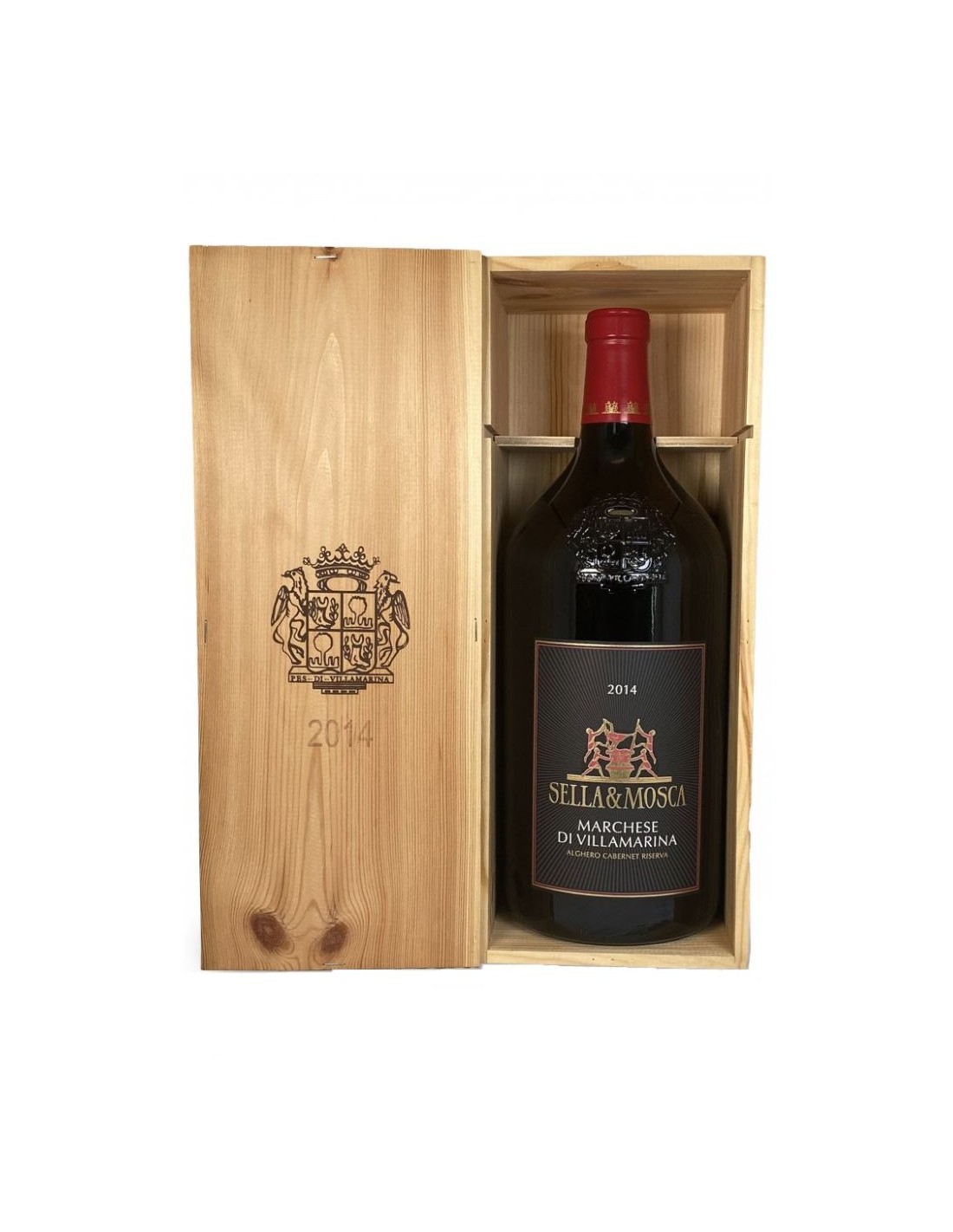 Marchese di Villamarina DOC. To the eyes it has an intense ruby red colour with elegant purplish hues, it is enveloped by ample and with great intensity perfumes, defined by notes of marasca cherry and black ribes, tobacco and spices. Its drink, rhythmic and silky, has weight and structure that its acidity keeps in perfect balance. Its finale is warm and seducing, with a great persistence. Ideal to accompany play, roasted meat, red meats and mature cheeses. In the Jéroboam version it comes with its original wooden box.