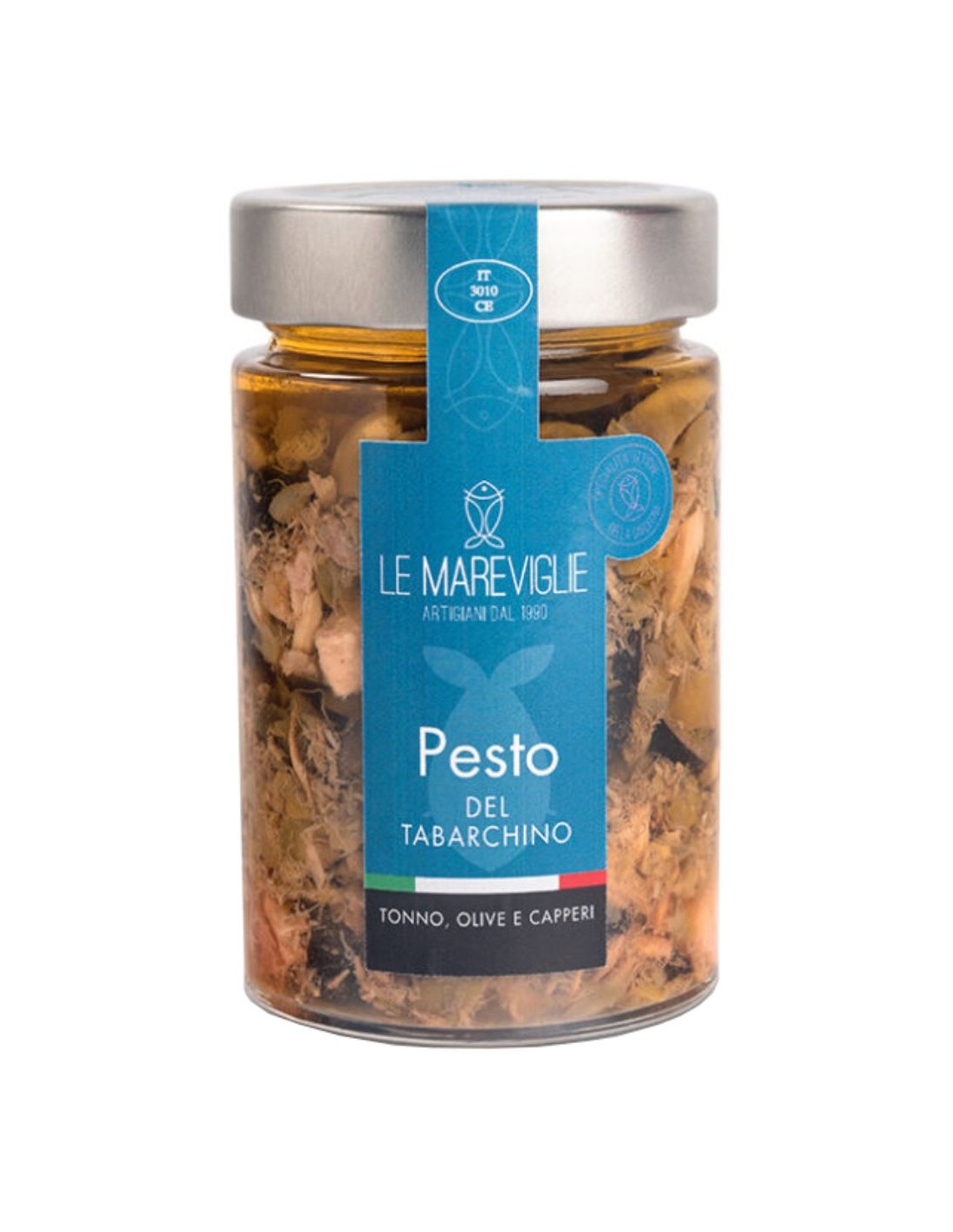 The Tabarchino’s pesto, for its unique taste and the delicate olive oil and capers condiment, is ideal to dress special first courses. From selected raw materials of the highest quality. Yellowfin tuna, olive oil, green and black olives, capers and salt go into creating a fine taste.