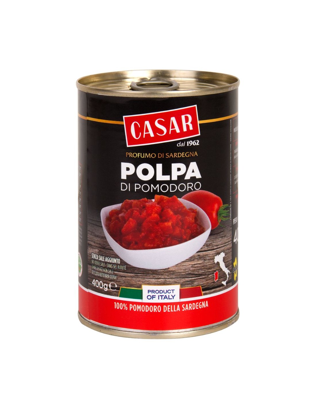 From a 100% Sardinian tomatoes, this fresh and perfumed pulp is very versatile in the kitchen. The tomato is cut into bits and handled cold, it is slightly cooked and then cut in little pieces, this process makes the pulp a valid substitute to fresh tomatoes out of season; tasty and light, it is ideal also as a pizza dressing.