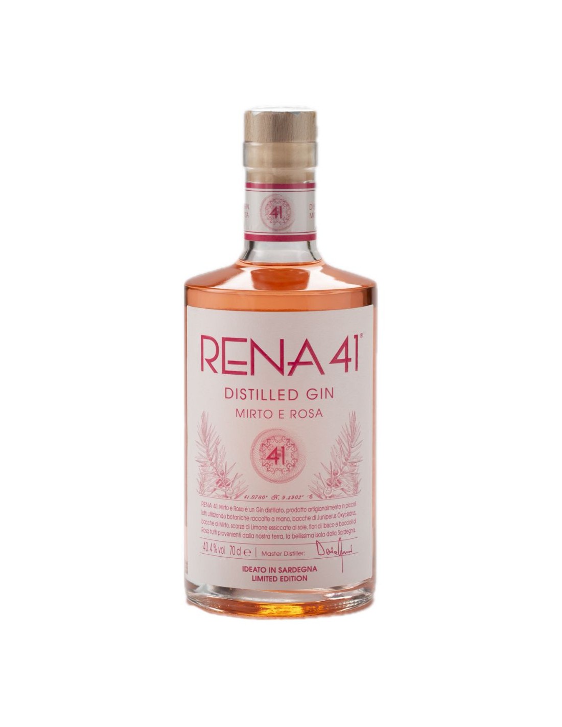 Working really close with their local herbalist and the Master Distiller the company has selected 15 plants. The Super Premium RENA 41 Distilled Gin Mirto e Rosa designed in Sardinia contains a unique and elegant blend of Juniper berries, Myrtly berries, Lemon zest, Hibiscus flowers and Rosebuds.