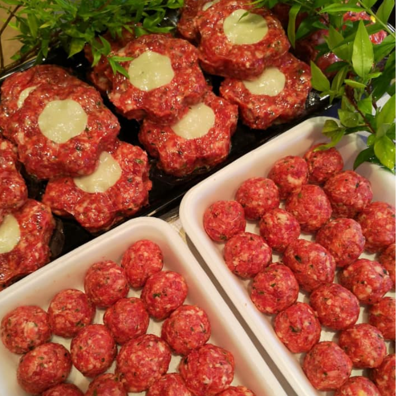 - Polpette di carne di agnello con pecorino stagionato DOP, uova, sale e prezzemolo