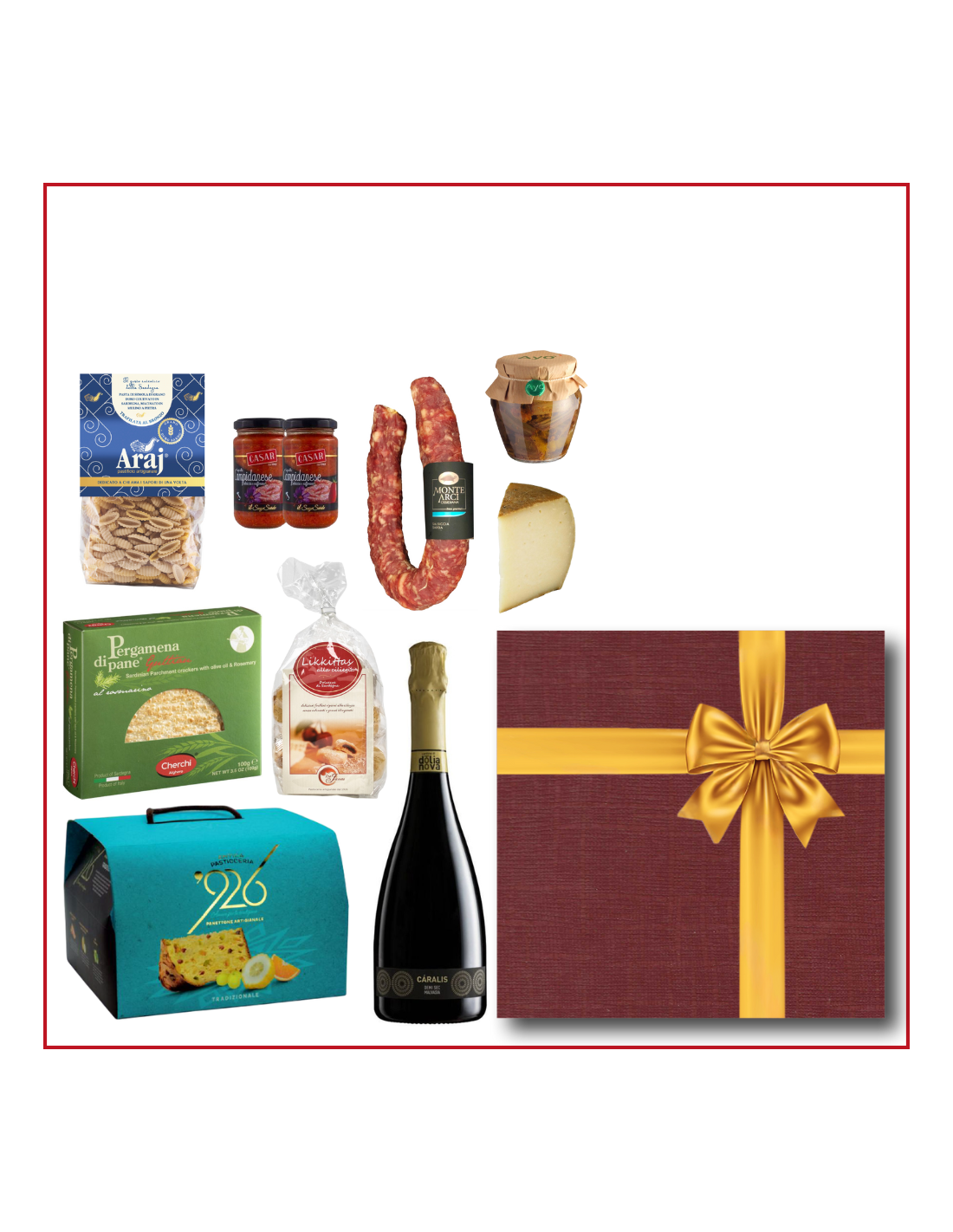 Questa confezione regalo enogastronomica contiene i seguenti prodotti