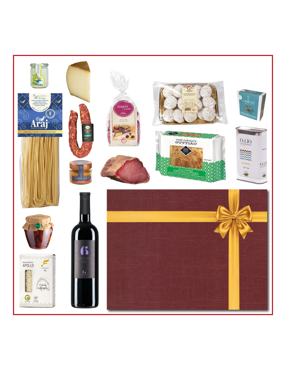 Questa confezione regalo enogastronomica contiene i seguenti prodotti