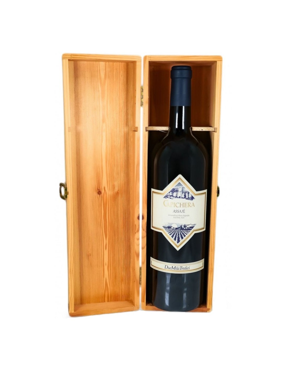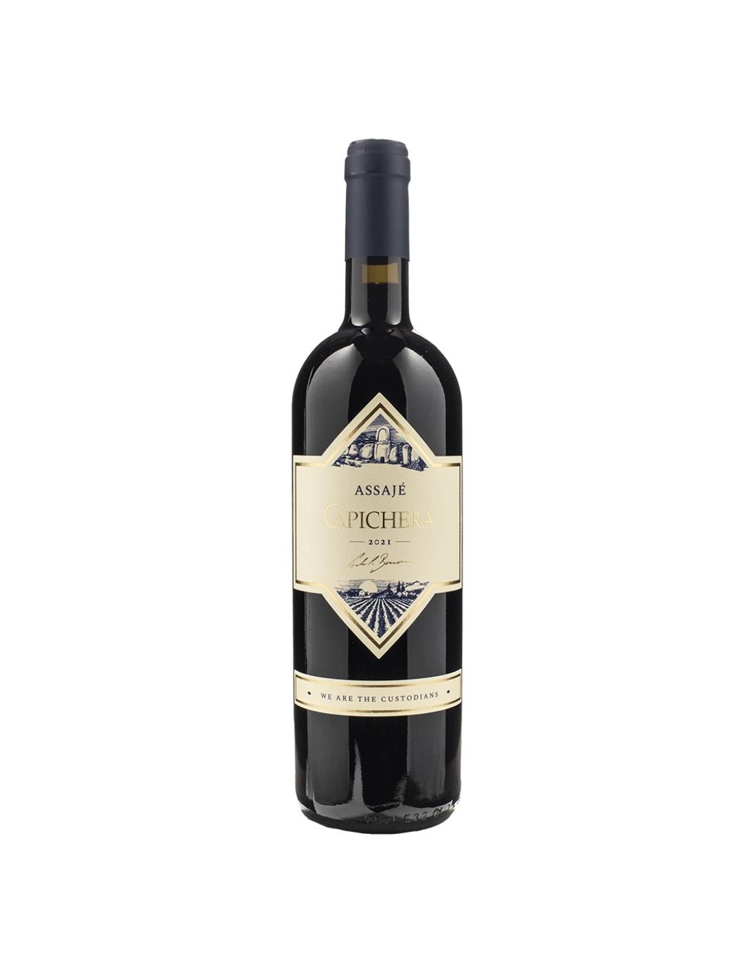 Un IGT Isola dei Nuraghi. L’obbiettivo di produrre vini rossi all’altezza dei suoi bianchi, ha spinto Capichera a selezionare negli anni i più noti vitigni autoctoni a bacca nera della Sardegna. Così nasce, nel 1997, Assajé: un blend di quegli autoctoni con una piccola percentuale di Syrah. È il desiderio realizzato di un vino elegante e profumato che tuttavia conserva potenza, struttura e identità. Assajé significa “è qualcosa”. All’occhio si presenta di un colore rosso intenso con riflessi violacei. Al naso rivela una splendida fusione di note eteree e vinose, si possono notare sentori di frutti neri, ciliegia sotto spirito, mora, mirto, spezie, eucalipto, cacao e note salmastre. Al palato si percepisce un sapore sapido, pieno, caldo con frutto maturo ricco e concentrato e fine tessitura tannica; il finale è lungo e persistente. Ottimo da gustare con carni rosse, cacciagione e formaggi stagionati, ma consigliamo anche da assaggiare come vino da meditazione. Nella versione in formato magnum viene venduta con cassetta di legno originale.