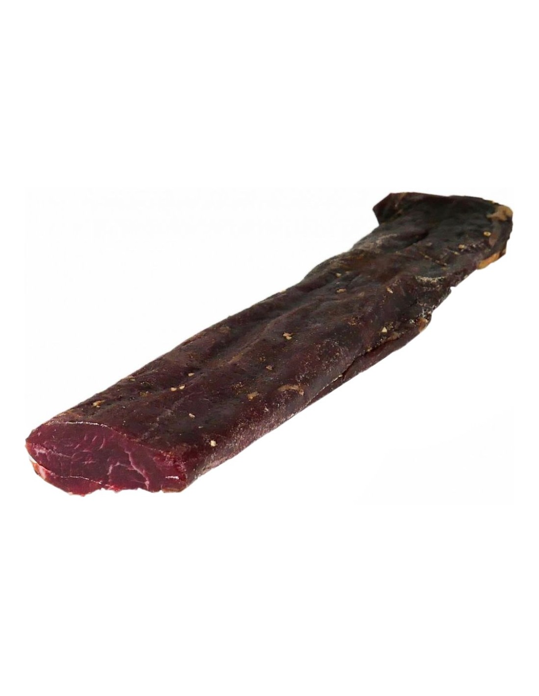 Lombo di pecora, sale, spezie e aromi. Da consumare in purezza come antipasto o abbinato ad un aperitivo; o in cucina per primi e secondi piatti.