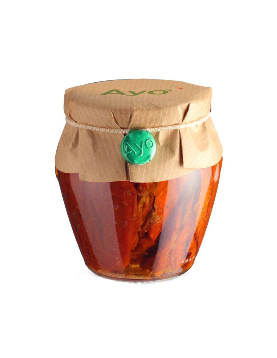 Seguendo la tradizione sarda, nascono questi pomodori farciti sott'olio. Gusto deciso e inconfondibile sono un'alternativa sfiziosa per un antipasto originale, ottimi per farcire bruschette e insalate di pasta.